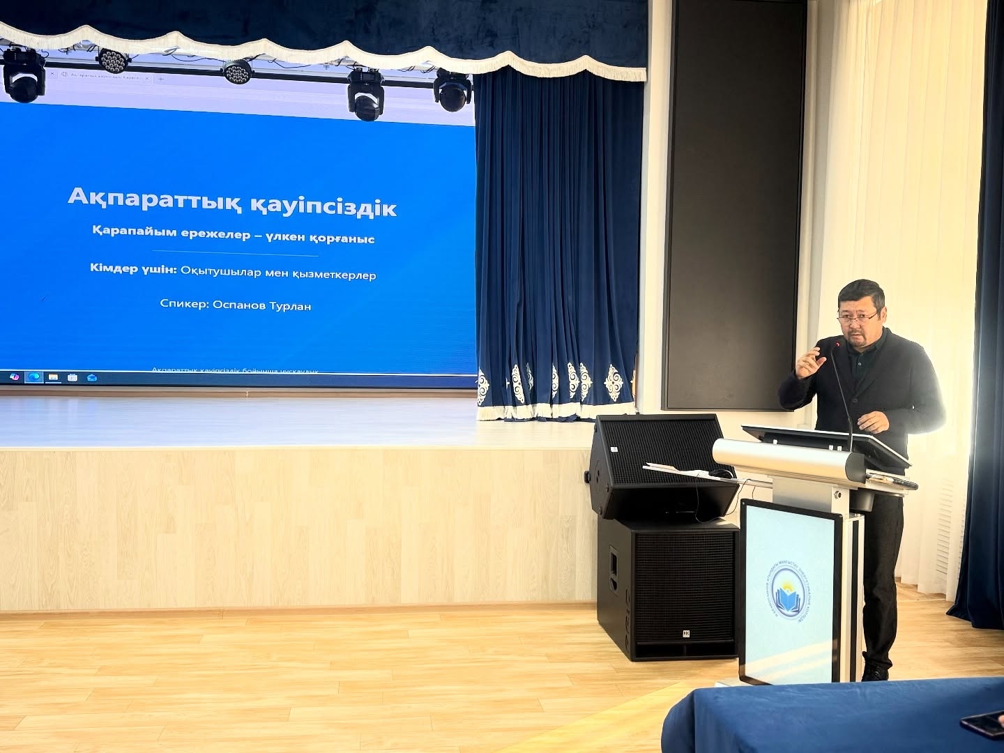 Жиын барысында колледж басшысының ақпараттық технологиялар жөніндегі орынбасары Оспанов Тұрлан Орынтұрлыұлы киберқауіпсіздіктің өзекті мәселелеріне тоқталды.