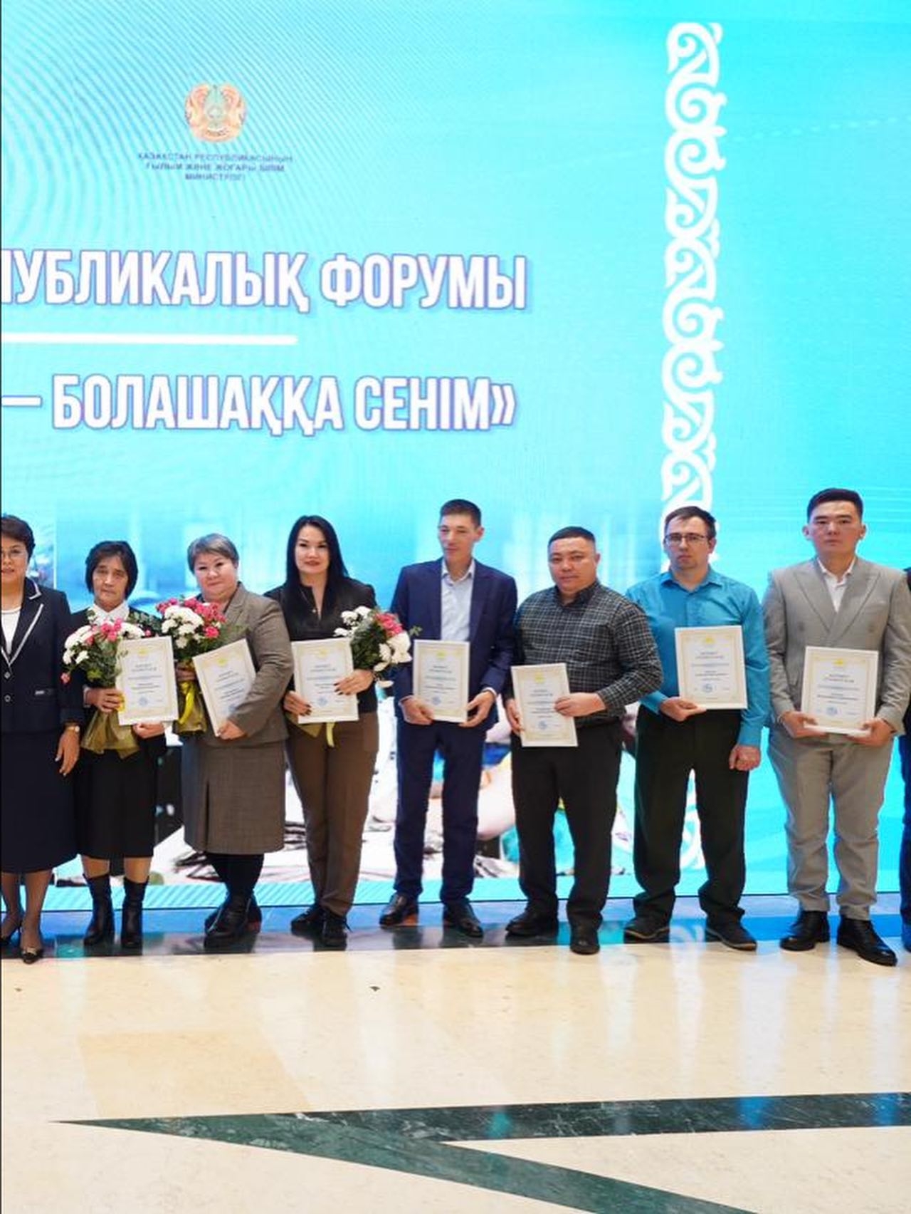 Сегодня, 24.11.2025, в Астане на Республиканском форуме «Уважение к труду – доверие к будущему» представитель нашего колледжа Жандарбек Калиев был награждён Почётной грамотой А. Мукашевой «За многолетний честный труд в образовательных организациях и активное участие в общественной жизни».